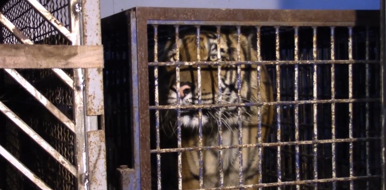 The tigers were found in awful conditions, not only physically but mentally. Terrified, cramped, stressed and covered in their own faeces.